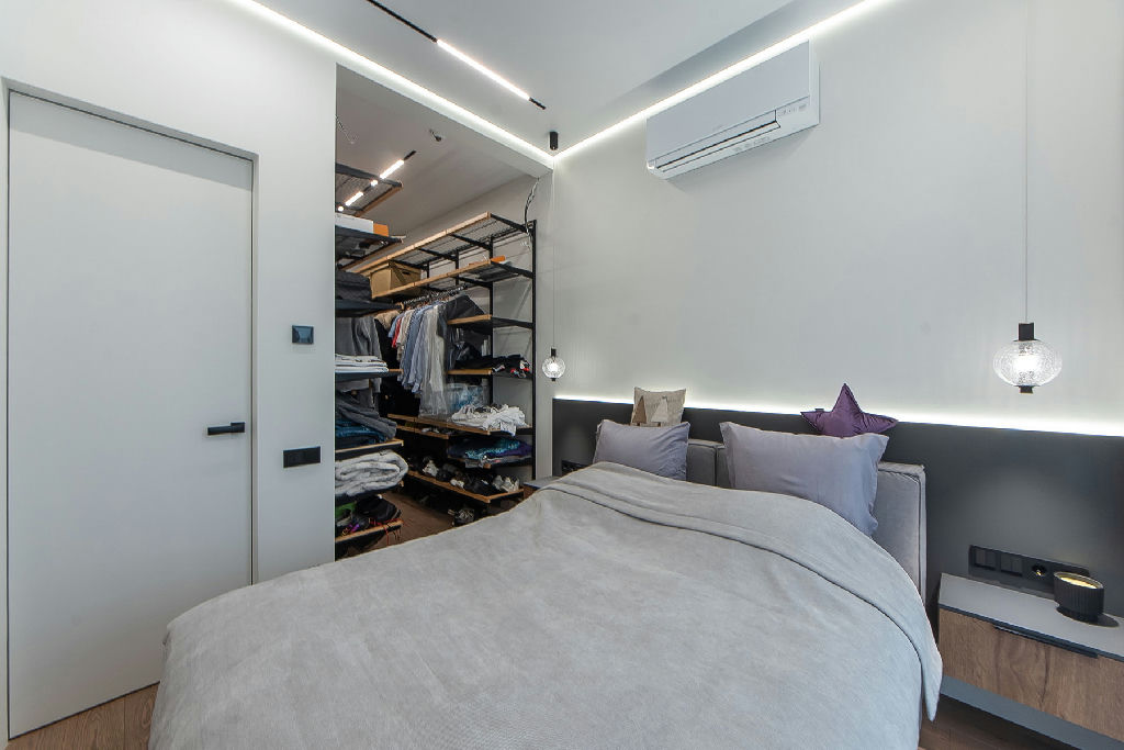 В апреле будут установлены стильные перегородки в гардеробную комнату и балкон.